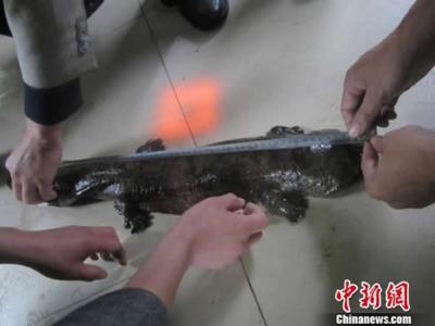 到鱼塘偷食的“怪鱼”被抓获 广东新丰龙围村村民老胡连日来发现自家鱼塘内的鱼莫...