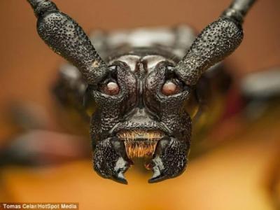 一只长角天牛正对着镜头,它是在多米尼加共和国境内被发现的 一只来自多米尼加...