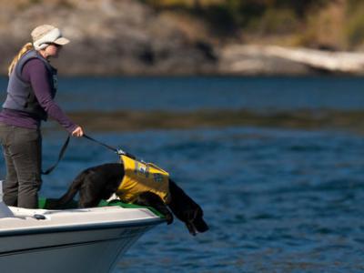 训犬员伊丽莎白·西利最近与拉布拉多混血狗塔克一起工作,在华盛顿州圣胡安岛附近...