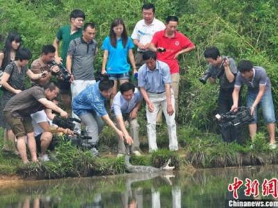 安徽第八次野外放归“活化石”扬子鳄