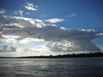风暴形成在巴西Tefe附近的亚马逊河主渠道 在亚马逊河流域进行的一项大规模土壤研...
