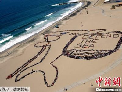 2012年6月7日,美国加利福尼亚,超过5000名学生、老师、志愿者在海滩上拼出一个巨...