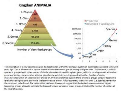 创新的分析模型图。从指数图上更高的分类级别的数据来预测动物界的7.7亿物种。 ...