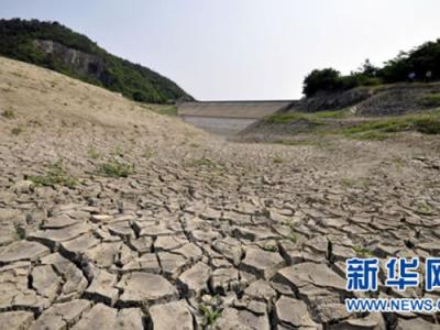 舟山市普陀区虾峙镇的虾峙水库干涸见底,只剩下正常库容1%的蓄水量(5月31日摄)。...