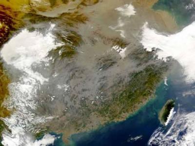 中国的空气污染卫星图 哈佛大学和清华大学六年来对北京及周边地区空气中CO2含量...
