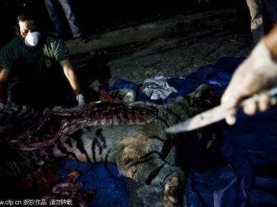 解剖苏门答腊虎 解剖苏门答腊虎 解剖苏门答腊虎 印度尼西亚苏门答腊岛北干...