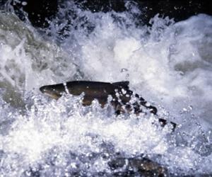 野生鲑鱼(salmon) 科学家们报告说,将野生鲑鱼(salmon)的卵在孵化场繁殖,然后将...