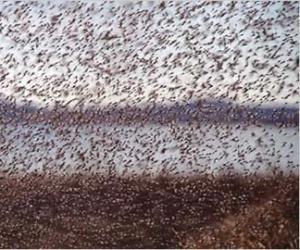 (Arni Einarsson拍摄)所示为Myvatn湖边缘区域成群的、想交配的雄性蠓在等待雌性...