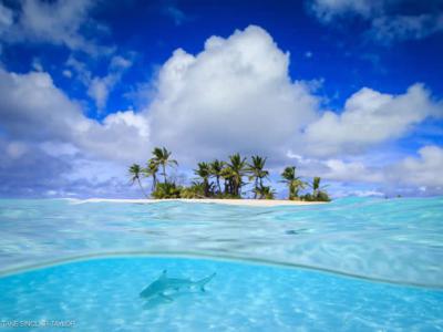 一条黑尖礁鲨在印度洋的科科斯-基林群岛的浅水区游泳(Credit...