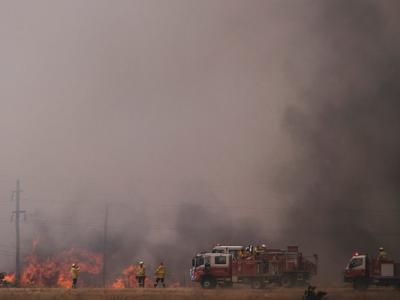 连续好几周,猛烈的野火产生的灰烬、煤烟和焦黑的植物,沿着澳洲新南韦尔斯(New S...