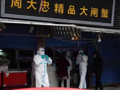防疫工作人员对华南海鲜市场进行检查。图片来自新京报(蜘蛛网eeook.com报道)为严...