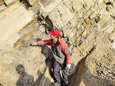 工作人员在云南省昭通市永善县万和剖面开展野外工作。中科院南京地质古生物研究所供...