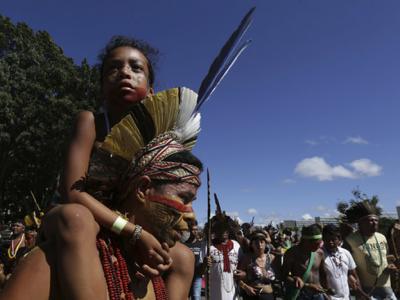巴西原住民4月不满权益倒退,抗议总统波索纳洛。波索纳洛希望进一步开发亚马逊雨林...