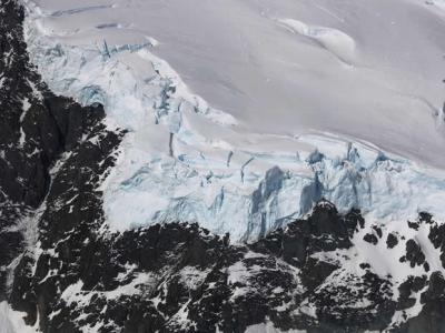 2017年10月NASA的冰桥任务,在南极半岛上拍到这张冰雪与岩石交...