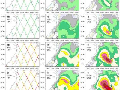 东中国海海浪N年一遇有效波高空间分布,左列来自卫星高度计(...
