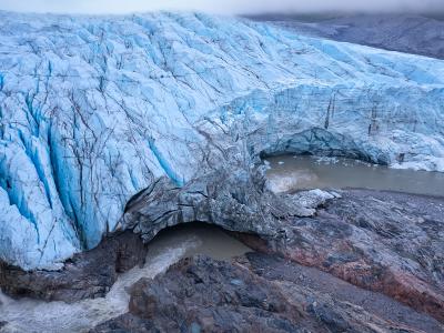 Kangerlussuaq附近的Russell冰川在日落时的鸟瞰图,冰川顶部的正视图(图片来源:J...