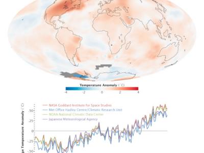 卫星测绘地图直观显示全球温暖的趋势 美国国家航空航天局地球观测站(NASA's Ear...