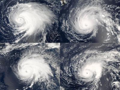 从左上角开始,按顺时针顺序依次是:2012年台风“莱斯利”;2007年台风“弗洛西”...