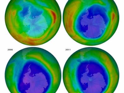 美国宇航局地球观测站公布了一组卫星测绘地图,展示了1987年关于臭氧层保护的《蒙...