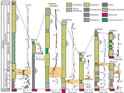 碳同位素地层对比 新元古代埃迪卡拉纪中期(距今约580Ma)的碳酸盐岩地层中发生...
