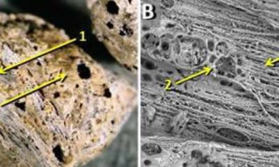 石英上的气孔和流动纹理很可能是地外星体撞击的后果(加州大学圣塔芭芭拉分校供)...