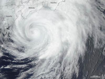 美国宇航局地球观测站今日公布了一张卫星照片,展示了日本热带风暴“古超”的景象...
