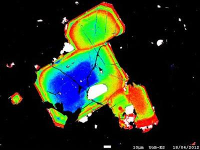 这是一法医式分析1980年圣海伦斯山爆发中采用的划斜晶体的假彩色图像 一项新的研...