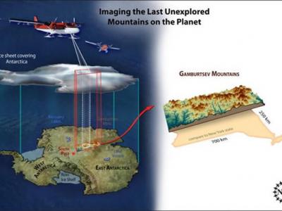 图片描绘“甘布尔泽夫省计划” 南极洲的甘布尔泽夫山脉 (Gamburtsev Mountains...