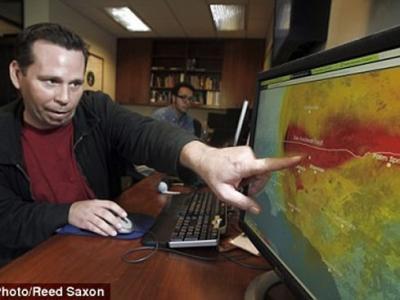 地震分析师安东尼-古尔里诺演示工作中的预警系统,已发出地震警告 美国的预警...
