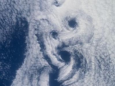 日本北部海面上出现冯卡门漩涡 在2001年,航天飞机拍摄的照片显示:在日本北部海...