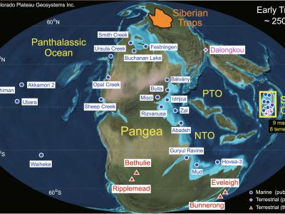 三叠纪早期全球古地理(~250 Ma)。改编自Ron Blakey,http://jan.ucc.nau.e...