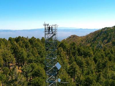 一个涡流协方差塔帮助研究人员测量亚利桑那州圣卡塔琳娜山脉的森林-大气气体和水的...