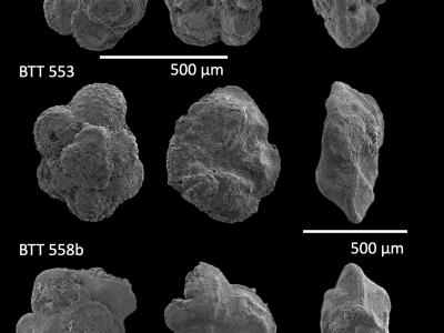 从意大利古比奥发现的微小的古老浮游有孔虫的扫描电子显微镜图像。版权:加布里埃拉...