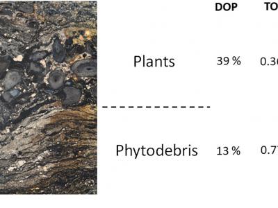 植物燧石和植物残骸层之间的对比。植物残渣层具有更多的总有机碳(TOC),但较低的...