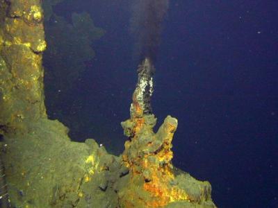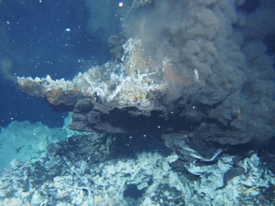 来自深海热液喷口的活跃烟囱,位于冲绳海槽,堺油田(Noho站点)。图片来源:全球海...