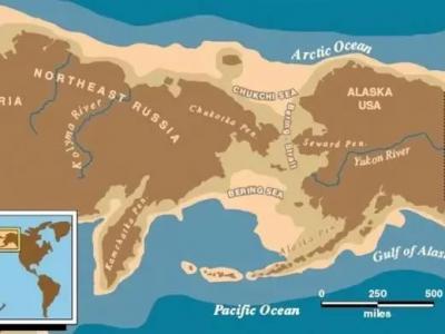 在最后一次冰川期,低海平面暴露了一个在西伯利亚和阿拉斯加之间的广阔陆地区域,被...