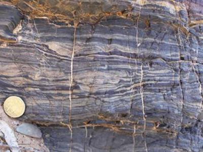 图中是“条带状铁层”,富铁物质呈红色部分,富硅物质呈白色(蜘蛛网eeook.com报道...