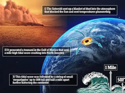 北美“巨浪”化石证明6600万年前灭绝恐龙的小行星撞击地球时激起1英里高巨大海啸路...