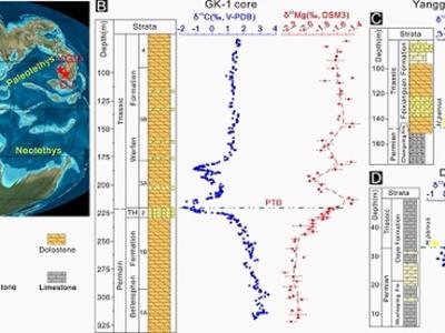 古特提斯二叠纪末期的全球古地理和研究剖面岩性及C-Mg同位素变化(蜘蛛网eeook.com...