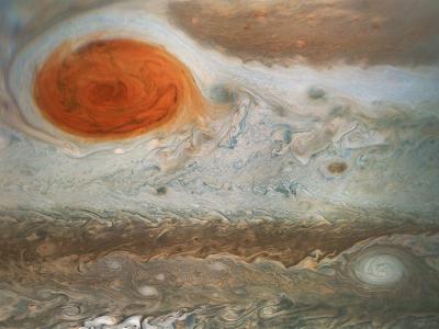 2018年,美国国家航空航天局的朱诺号探测器拍摄到木星大红斑。(图片来源:美国国家...