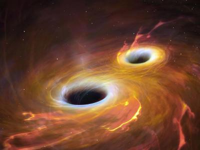 两个黑洞合并的艺术家插图。(图片来源:Mark Garlick/盖蒂图片社科学图片库)(蜘...