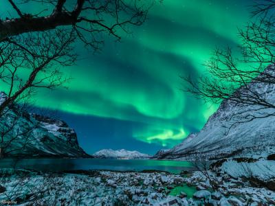 2014年1月9日,摄影师Harald Albrigtsen在挪威特罗姆瑟拍摄了这张北极光照片。(图...