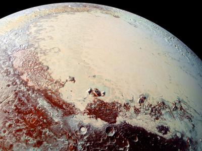 2015年,新视野号宇宙飞船拍摄到冥王星及其心形卫星Planitia。(图片来源:美国国家...