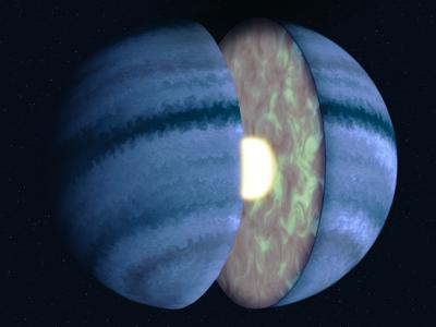 一位艺术家的WASP-107 b概念展示了行星气体外壳内的湍流大气混合。资料来源:Rober...