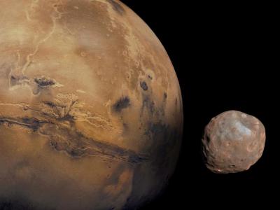 一张火星及其双胞胎卫星火卫一和Deimos的合成照片。新的研究表明,这对彗星实际上可...