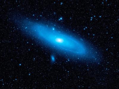 附近的仙女座星系,较老的恒星以蓝色突出显示。一种新的量子引力理论可能有助于解释...