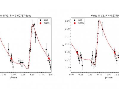 两个ab型天琴座RR V1和V2的折叠r波段光曲线。来源:Ngeow等人,2024年。(蜘蛛网ee...