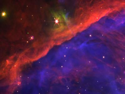 从猎户座星云的中心附近看,这张JWST的照片捕捉到了猎户座。猎户座条是一个相当直的...