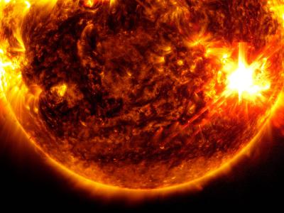 美国国家航空航天局太阳动力学观测站拍摄的5月10日的X5.8太阳耀斑。(图片来源:NA...
