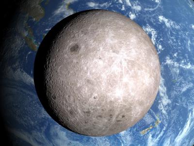 与面对地球的一侧相比,月球的另一侧有很多陨石坑和更少的黑点。(图片来源:美国国...